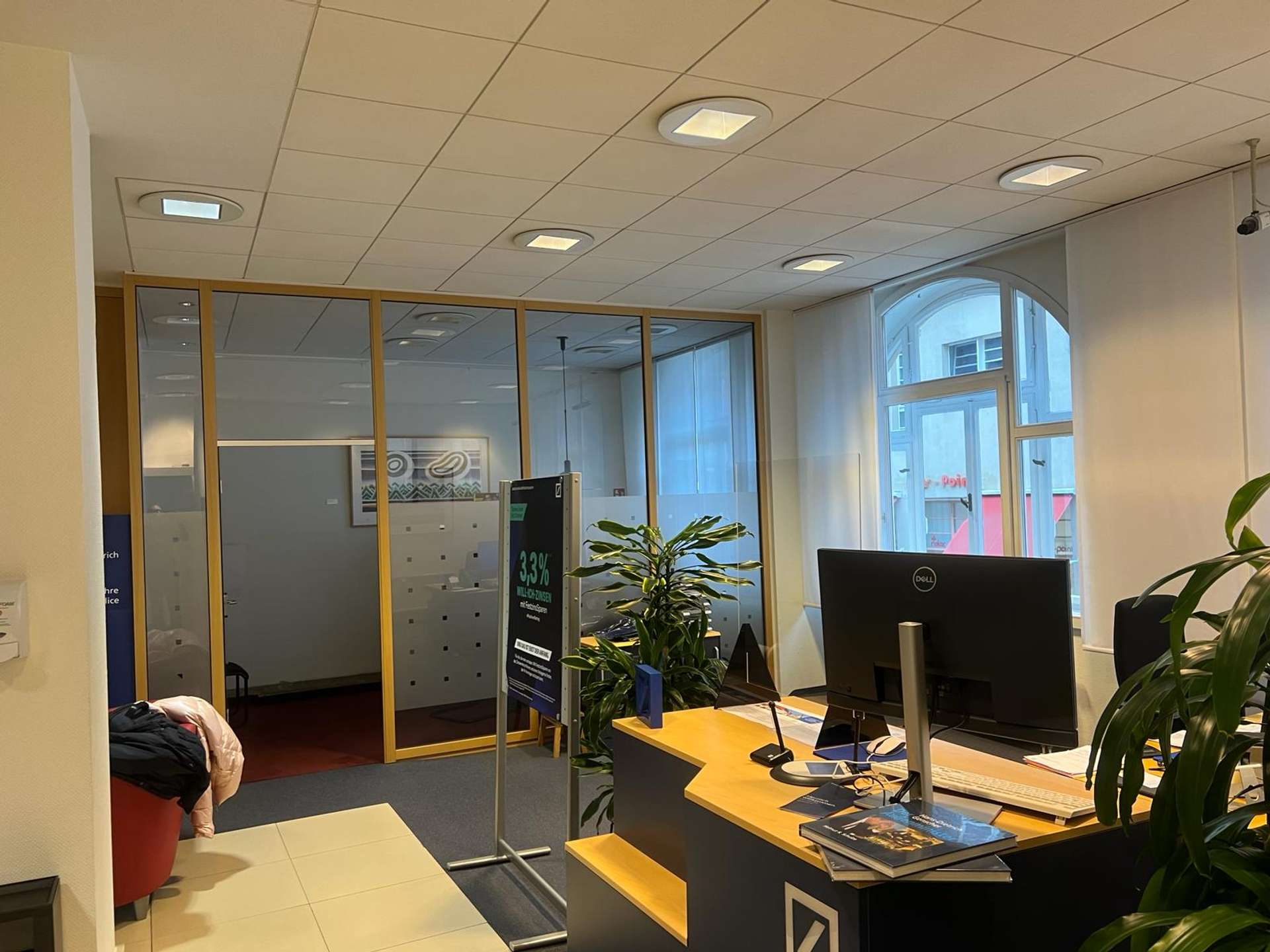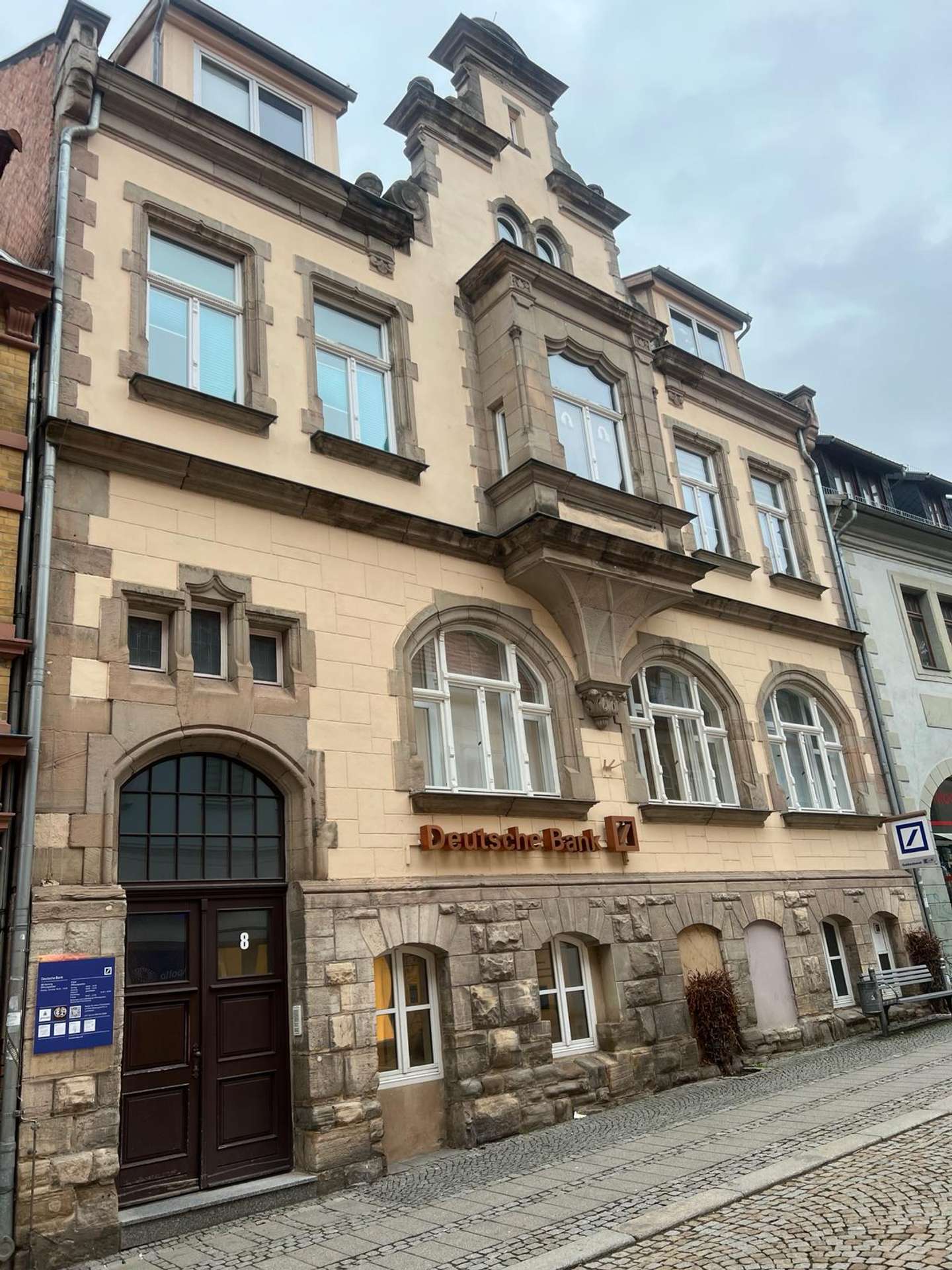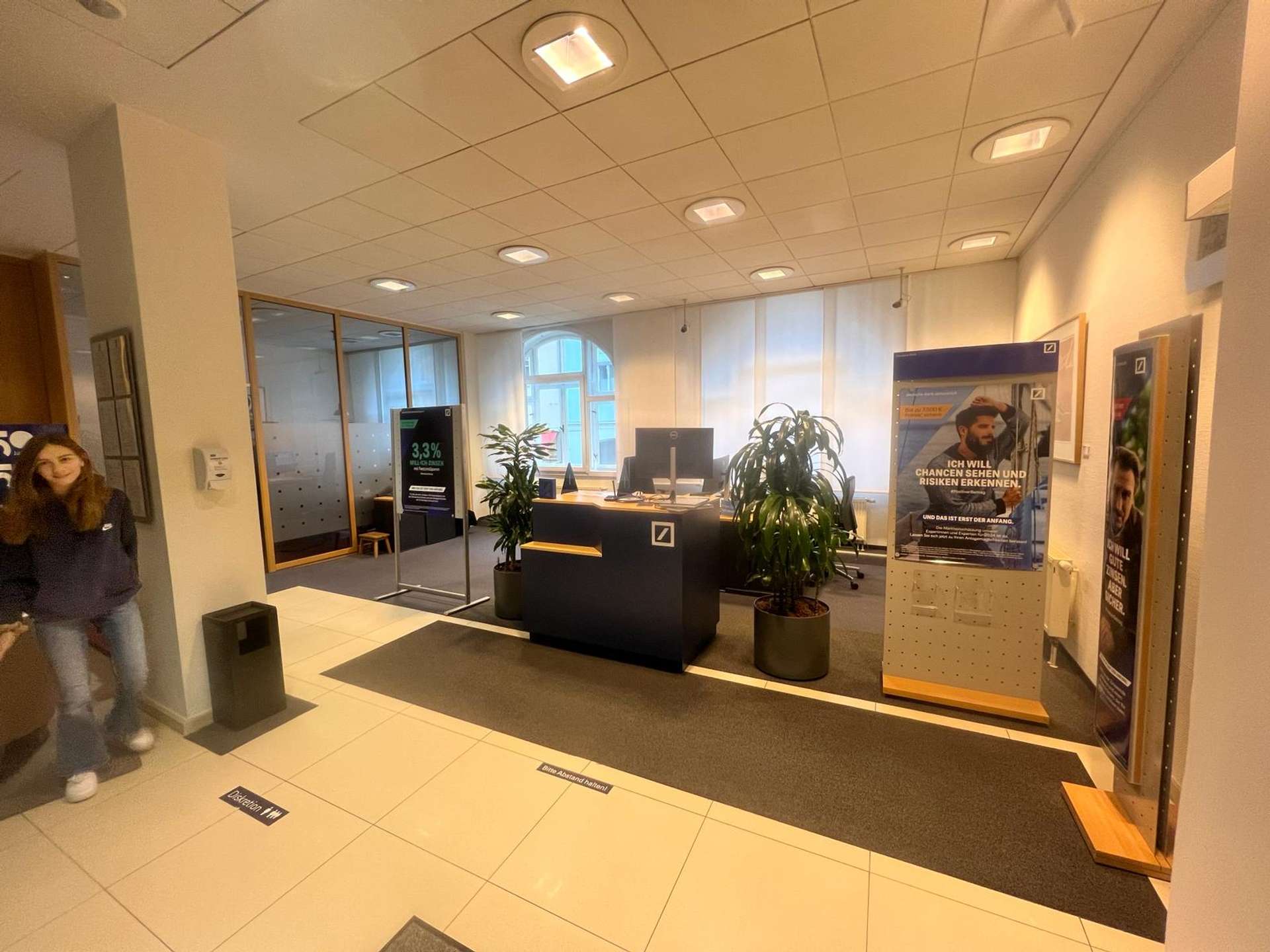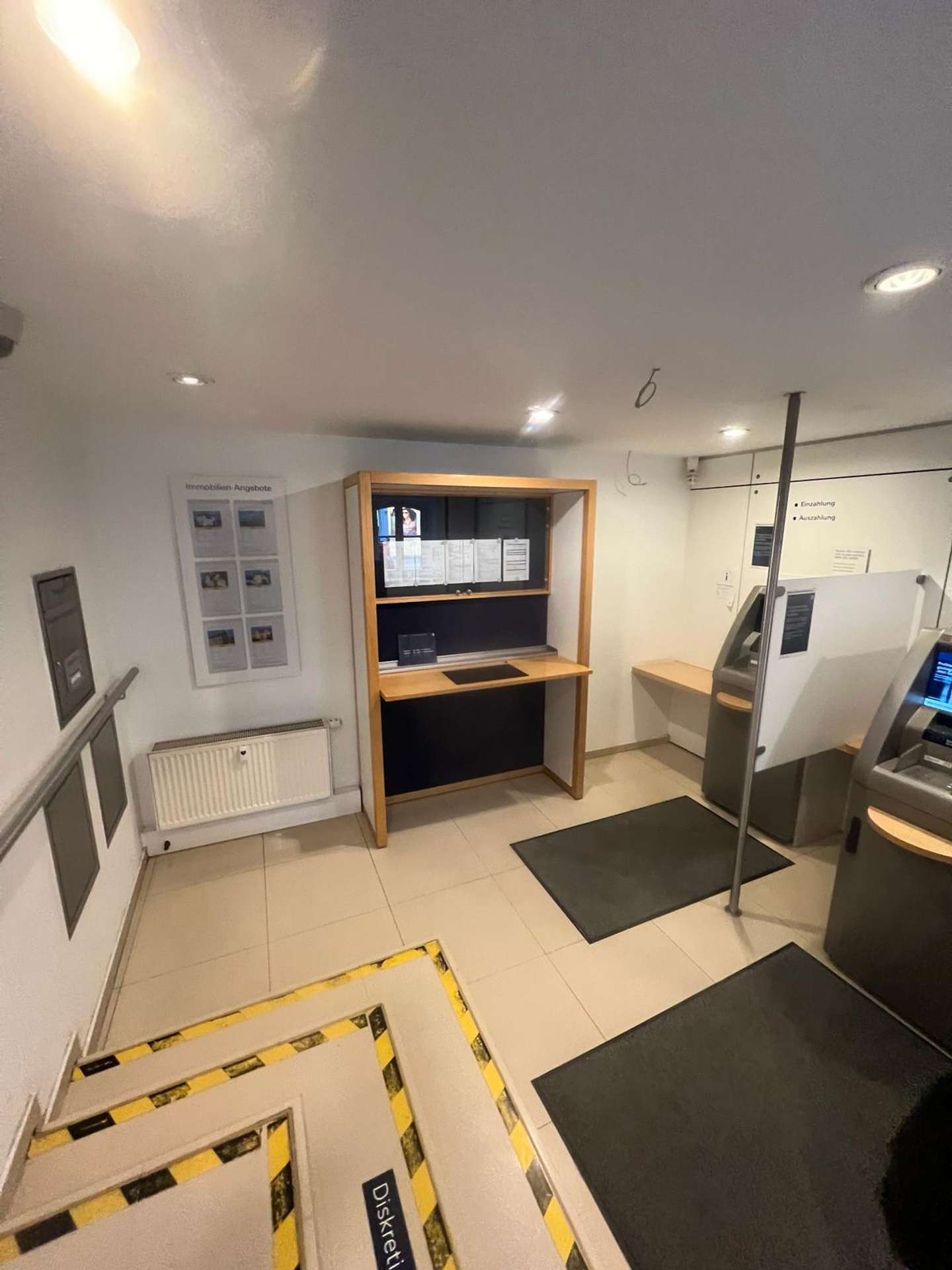 Die Gewerbefläche der ehemaligen Deutschen Bank steht komplett zur Verfügung. Die 405 m verteilen sich auf 3 Ebenen. Der neue Nutzer kann sich die Flächen aussuchen, die für seine Bedürfnisse am besten in Frage kommen. Separate Zugänge sind vorhanden, so dass eine bauliche Trennung möglich ist. Das Mietobjekt wird bezugsfertig an den neuen Mieter übergeben. Individuelle Wünsche werden bei der Ausführung berücksichtigt.