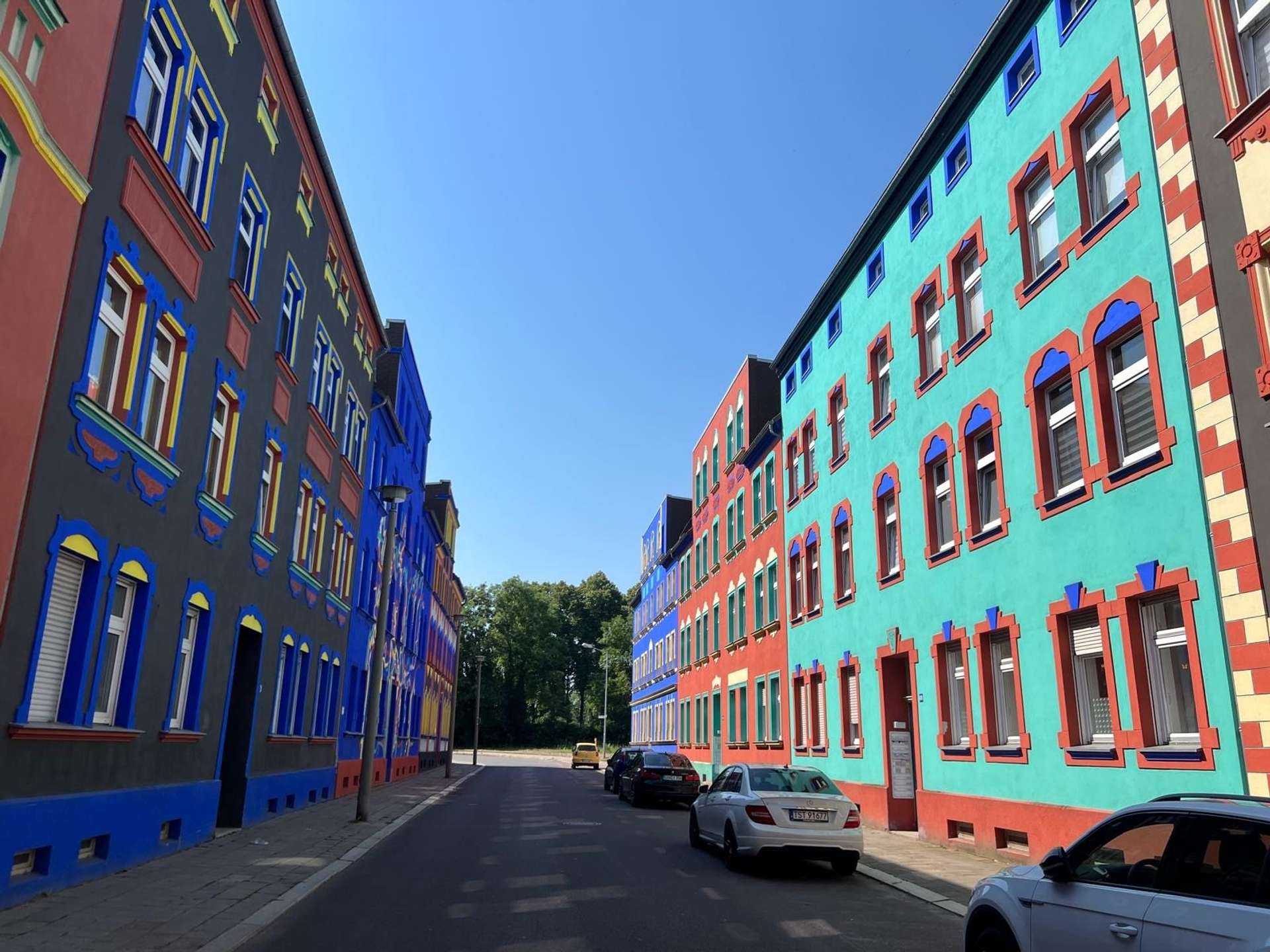 Die Häuser in der Otto-Richter-Straße wurden zwischen 1904 und 1916 erbaut und die Fassadengestaltung wurde Anfang der 1920er Jahre nach Entwürfen des Architekten Bruno Taut und Künstlers Carl Krayl umgesetzt. Bei der Bebauung handelt es sich um eine frühe baugenossenschaftliche Wohnanlage, die im Auftrag des Magdeburger Mieter-, Bau- und Sparvereins errichtet wurde. Ende des vergangenen Jahrhunderts wurde mit der Sanierung dieses Straßenzugs und der Rekonstruktion der Fassadengestaltungen begonnen, die heute wieder in der ursprünglichen Farbgebung leuchten, vielleicht sogar ein wenig intensiver, als dies in den 1920er Jahren mit den damaligen Fassadenfarben möglich war. Die für ihre Zeit spektakulären Anstriche wurden durchweg in starken ungebrochenen Buntfarben im Sinne einer expressionistischen Architekturauffassung umgesetzt.
