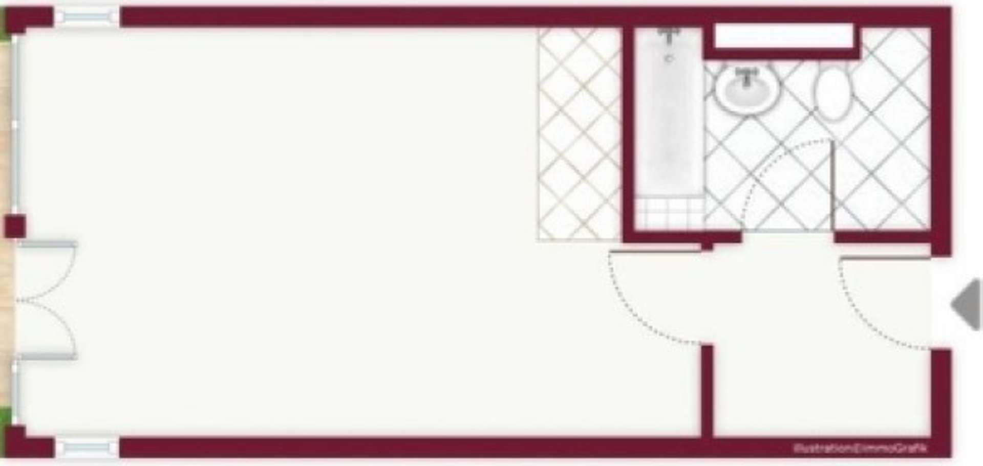 Die Wohnung verfügt über ein hübsches Zimmer, welches mit Laminat und Fliesen ausgelegt ist. Die entsprechende Etage lässt sich bequem über einen Fahrstuhl erreichen. Zur Wohnung gehört auch ein Balkon. Ein Auto-Stellplatz gehört ebenfalls zur Wohnung, weshalb Ihnen keine lästige Parkplatzsuche mehr bevorsteht. Ebenfalls komfortabel ist der Kellerraum, der Stauraum für Ihre Habseligkeiten bietet. Die Wohnung besteht aus einem geräumigem Zimmer in welchem die Küche integriert ist sowie einer kleinen Diele und einem Badezimmer. Die Häuser sind in einer modernen, offenen Bauweise erbaut und schaffen durch die Vielzahl von schönen Balkonen und gepflegten Mietergärten eine