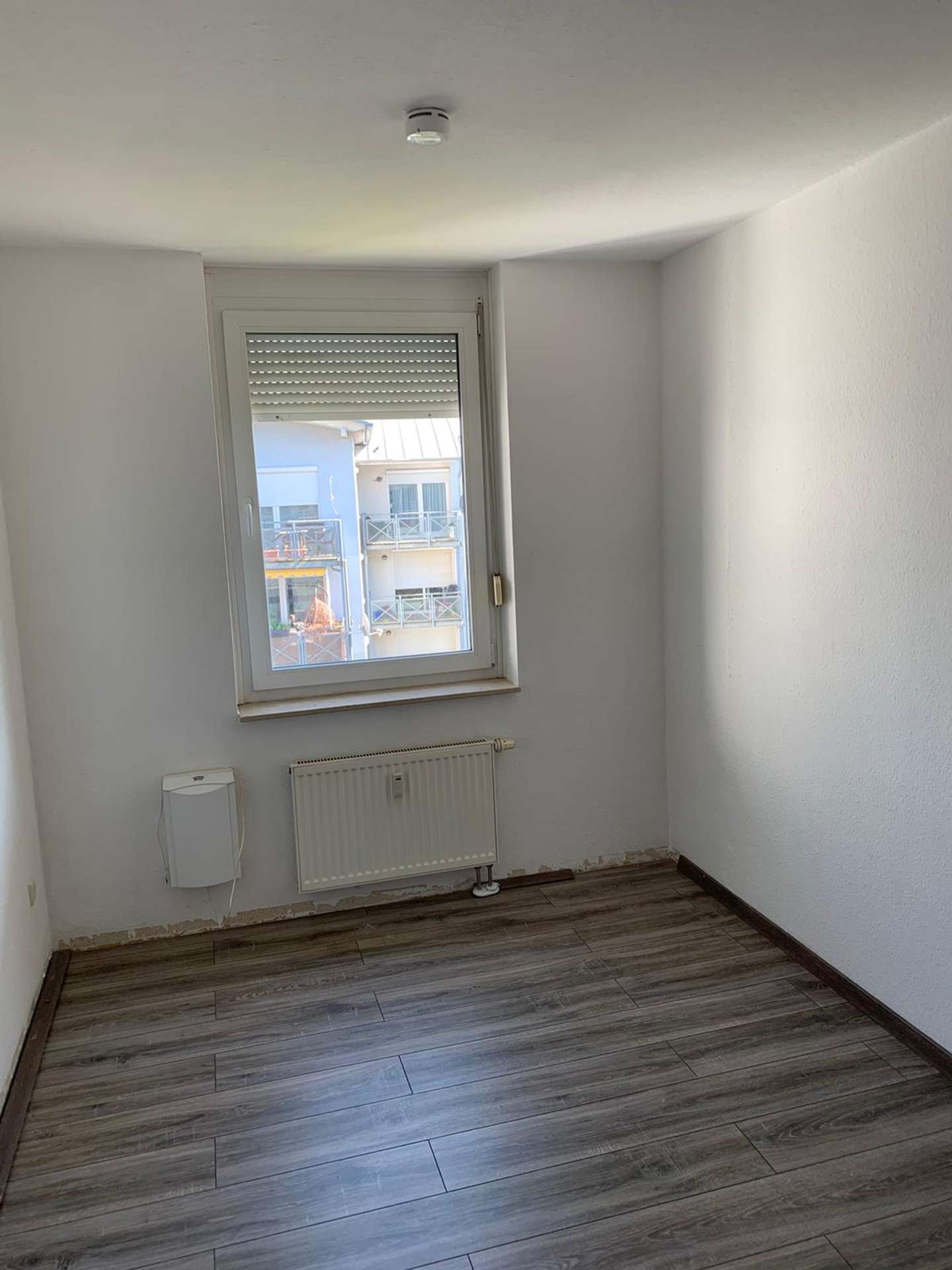 Auf den Fußböden im Flur, Wohn- und Schlafzimmer ist schönes Laminat verlegt, in der Küche und im Badezimmer liegen helle Fliesen.