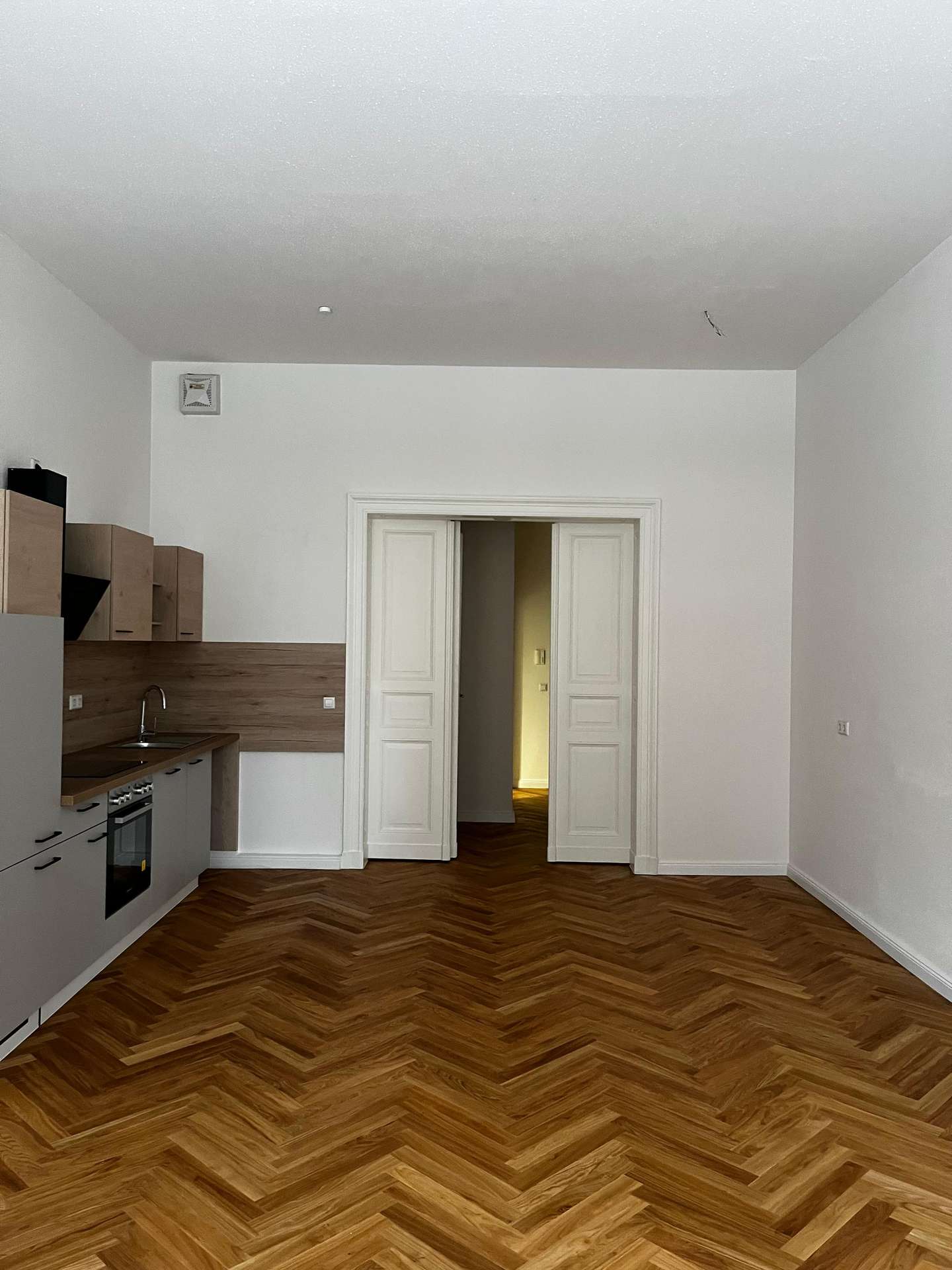 Die Wohnung verfügt über ein helles Wohnzimmer, ein separates Schlafzimmer sowie einen großzügigen Eingangsbereich. Eine neue Einbauküche wurde eingebaut und bietet modernen Komfort.